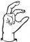 На ћирилици написано ТРЊИНА БЗЕНИЧАНИН састоји се из 16 слова [?]. Исписано ћириличном једноручном азбуком за глувонеме: